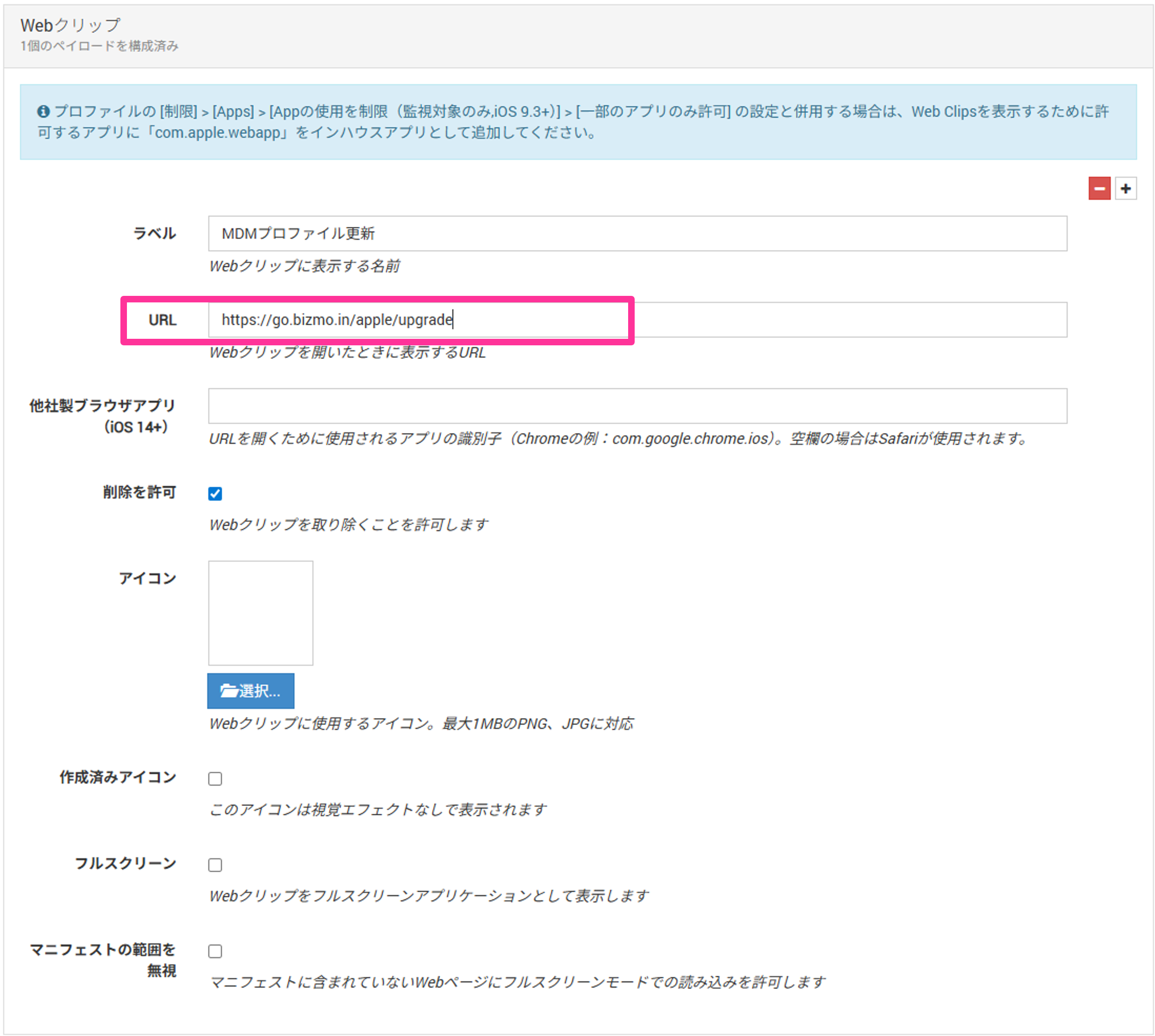 (管理画面操作)MDMプロファイル更新用Webクリップを配付する