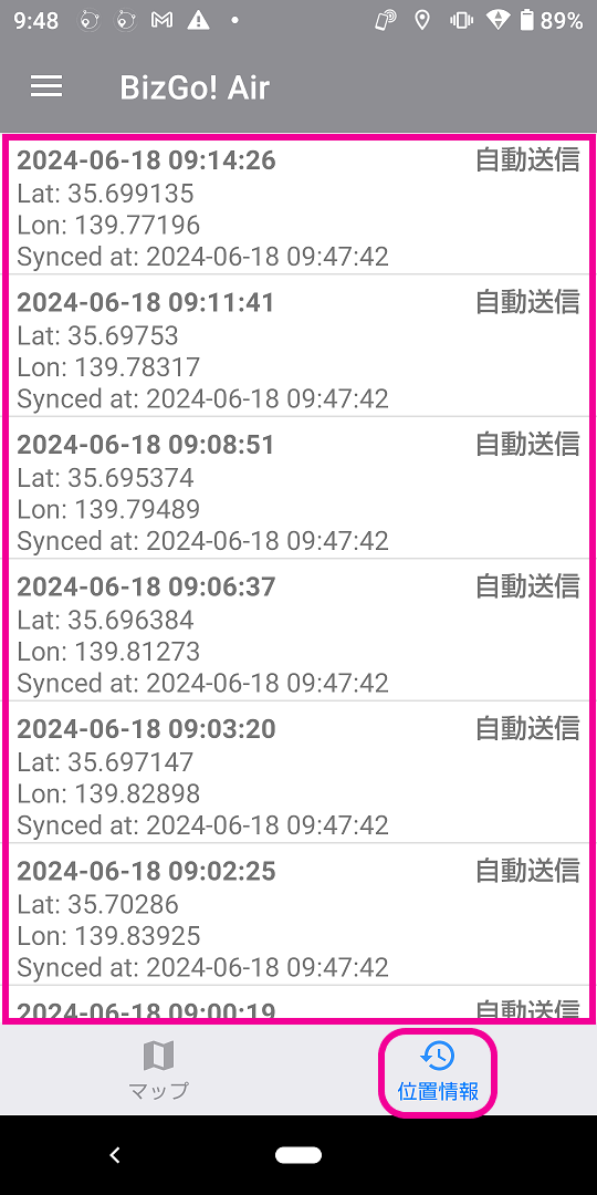 タップして位置情報の履歴が確認できます。