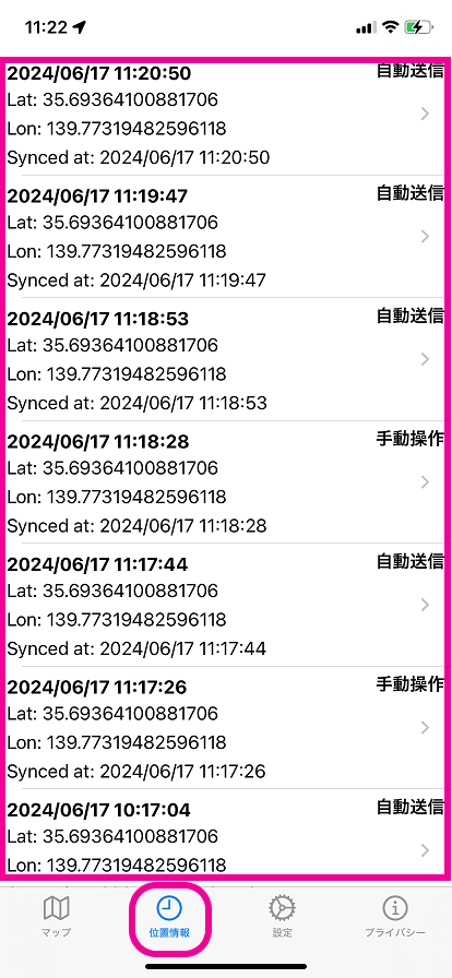タップして位置情報の履歴が確認できます。
