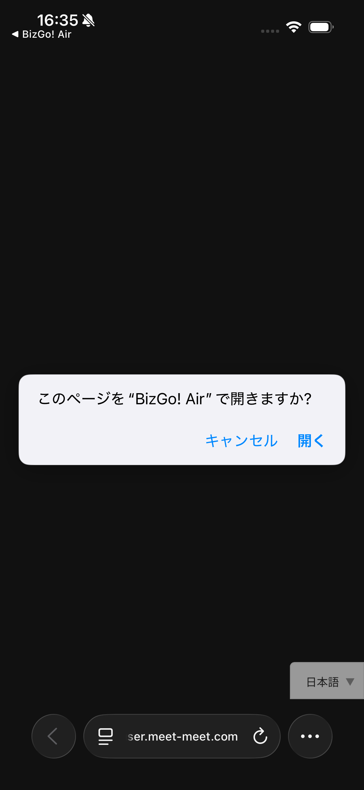 1. 「このページをBizGo!Airで開きますか?」のページが表示されます。
