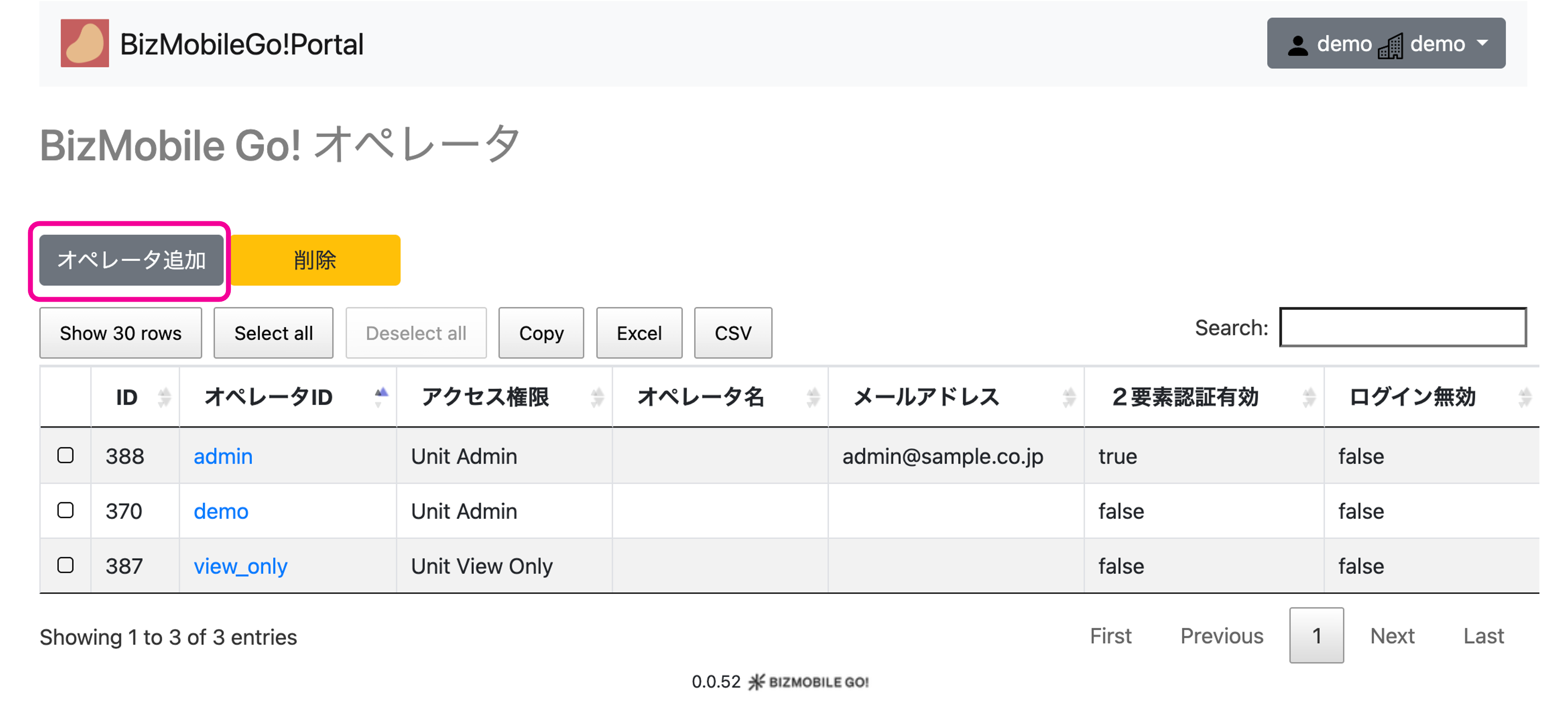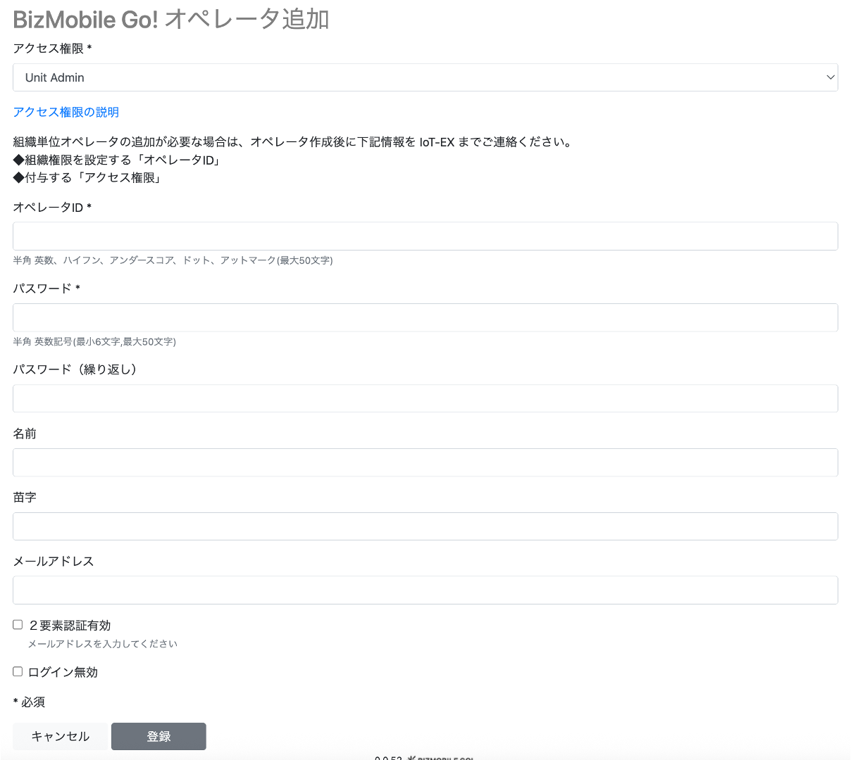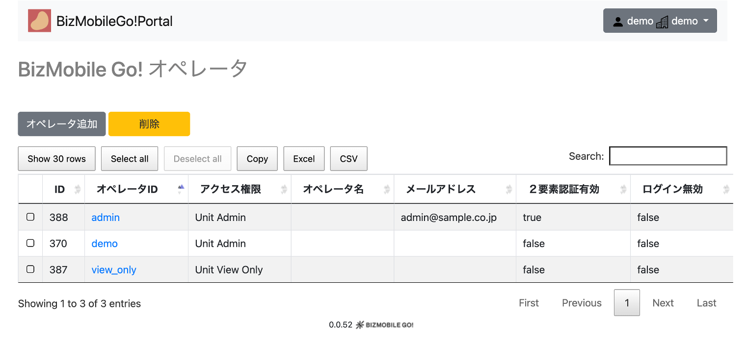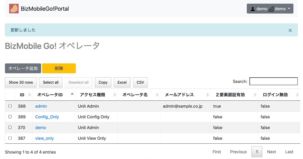 2. BizMobile Go! オペレータのポータルサイトが開きます。