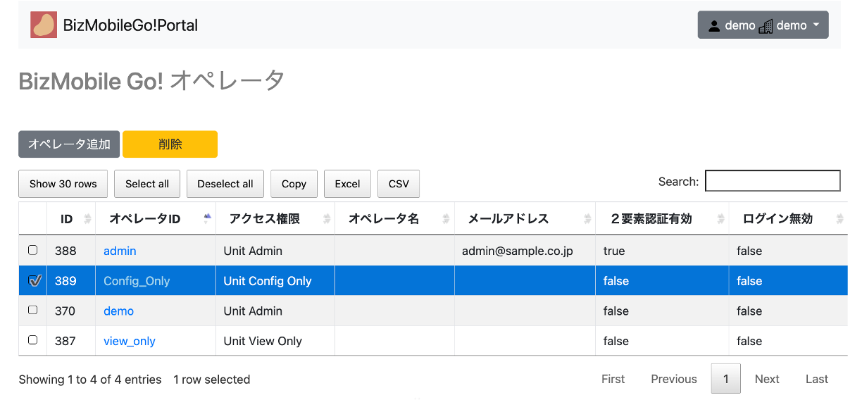 1. 編集したいオペレータIDを選択します。