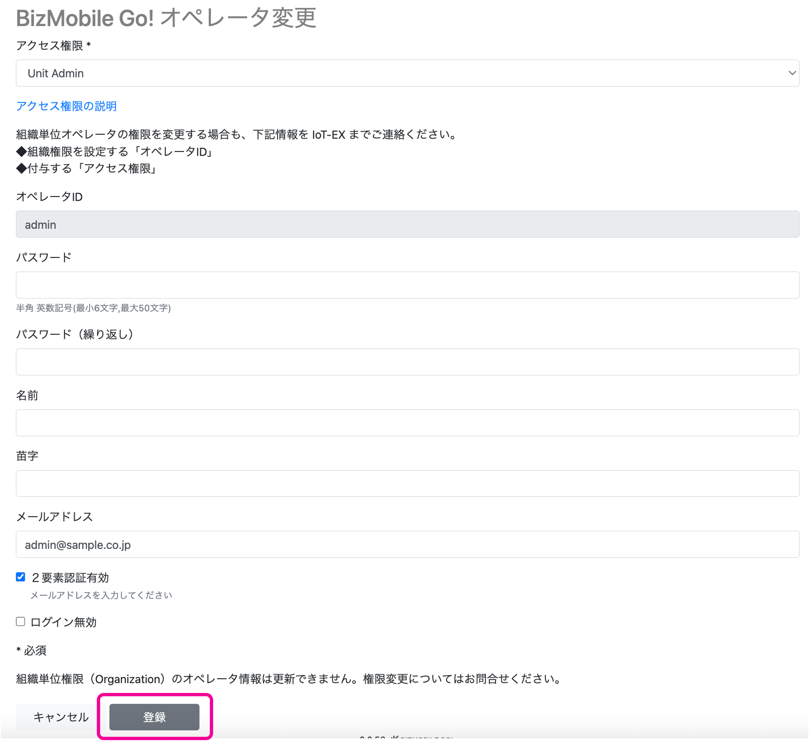 ログインオペレータ情報の編集