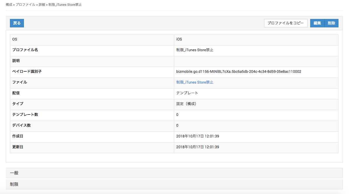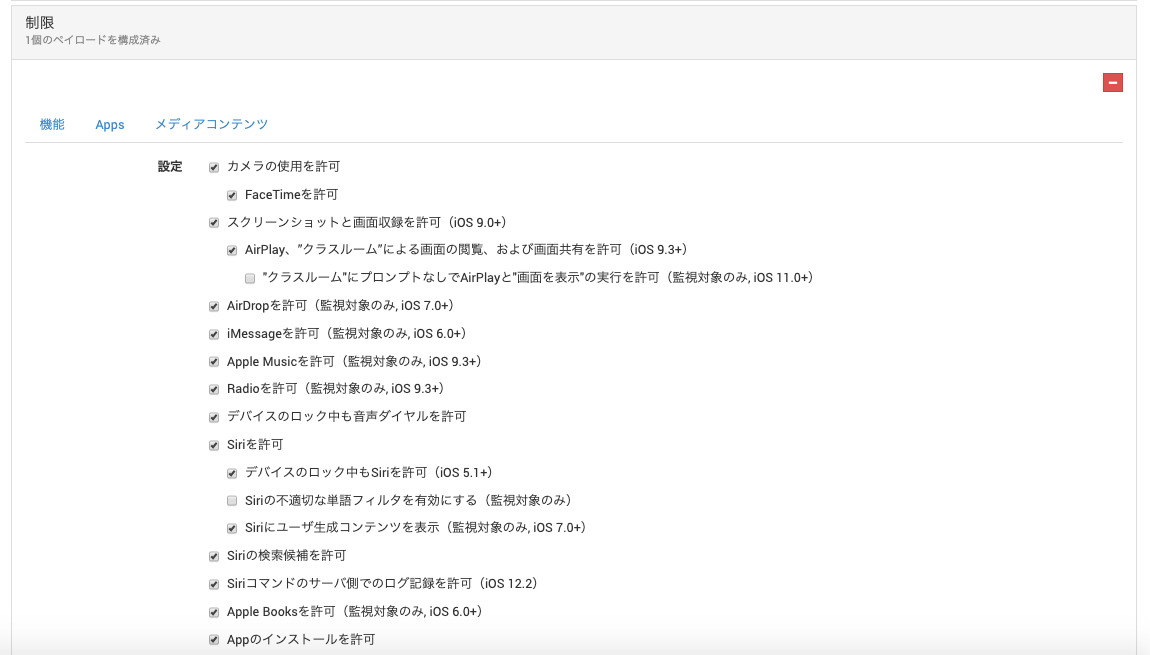 プロファイルの設定内容の詳細と対応のiOSバージョンについての詳細については、こちらをご参照ください。