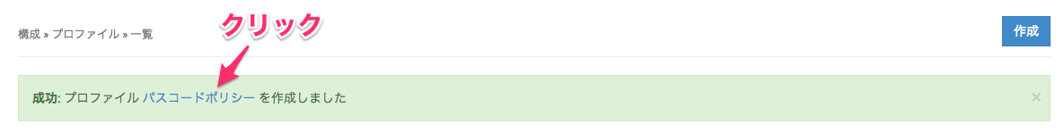 1. 【構成】→【プロファイル】画面から[作成]をクリック します。