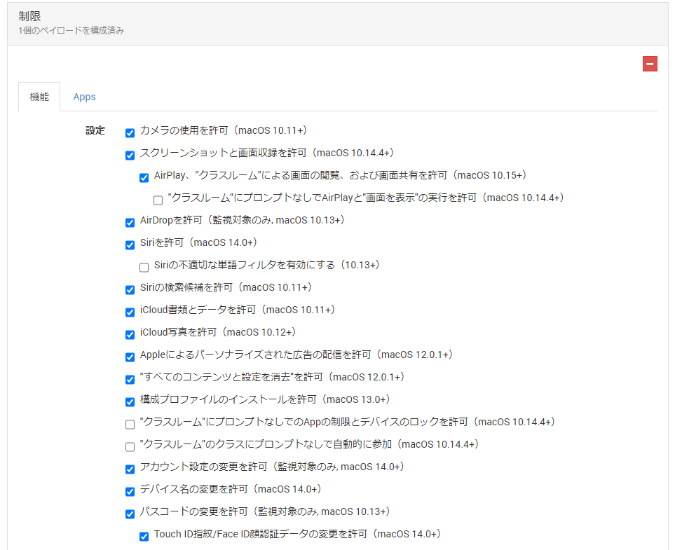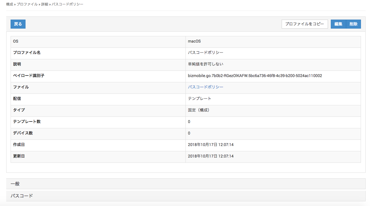 MacOSのプロファイル詳細については、MacOSプロファイル詳細を参照ください。