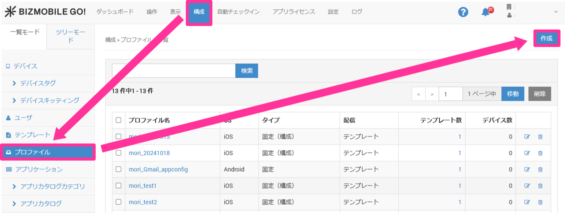 ゲストモードでの利用環境を設定するプロファイルを作成します。