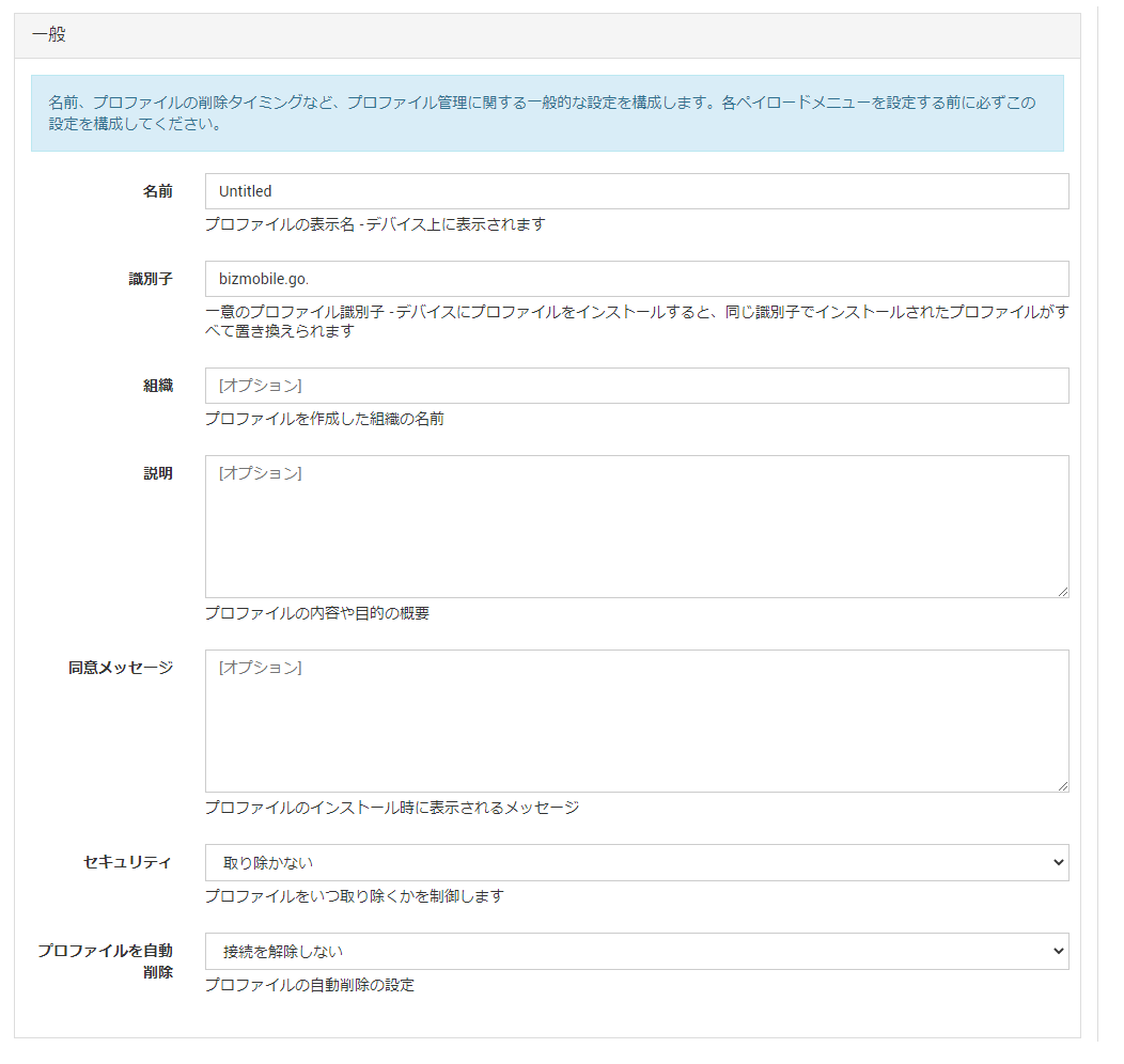 設定可能な項目の詳細はデバイス共通プロファイルの詳細をご参照ください。