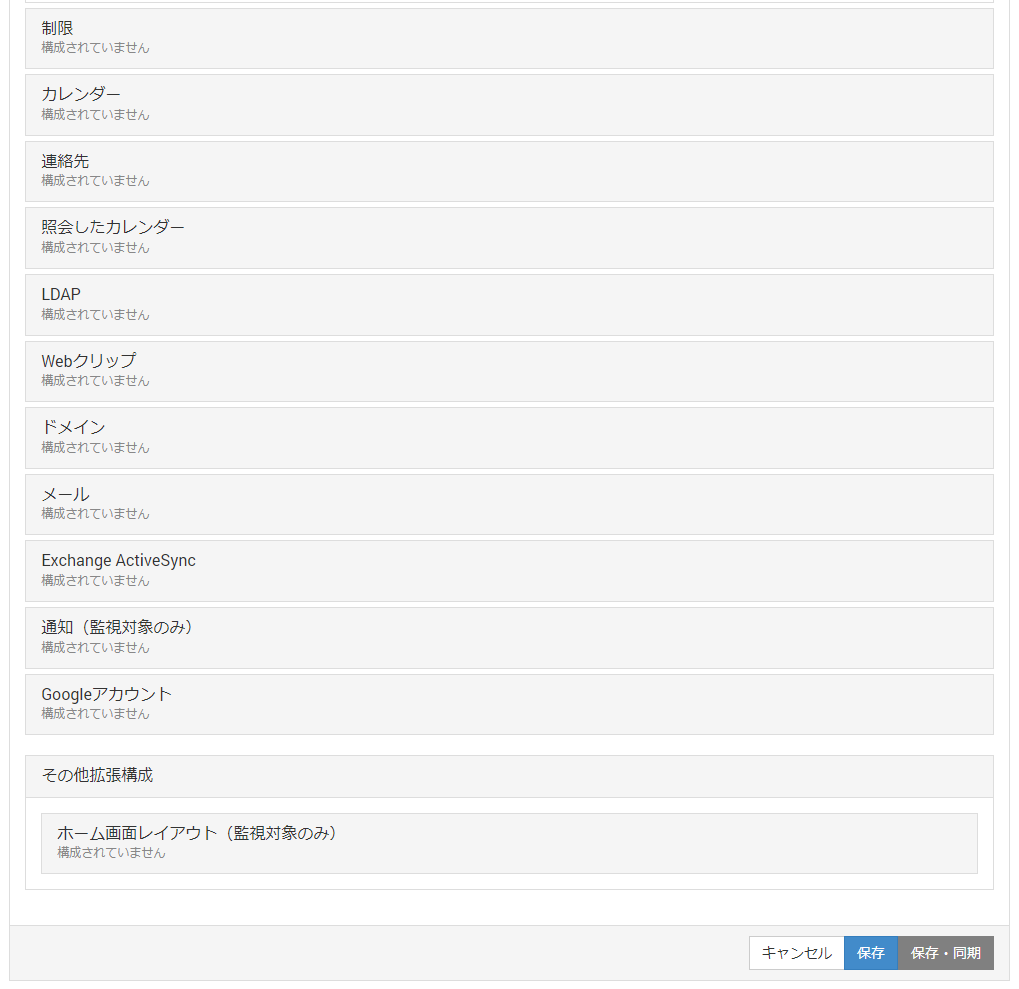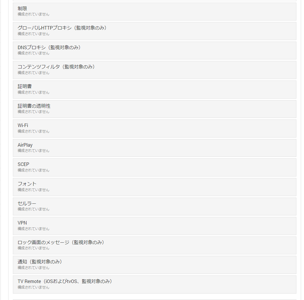 5. デバイスプロファイルで利用可能なペイロードと、その他拡張構成です。必要項目を構成し保存します。