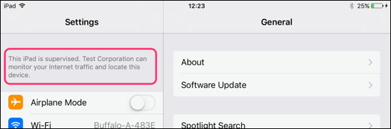 このiPadは〇〇(組織名)によって監視および管理されていますと表示されていることを確認してください。