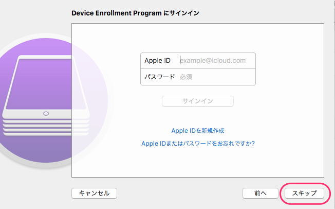 1. Device Enrollment Programにサインインは[スキップ]をクリックします。