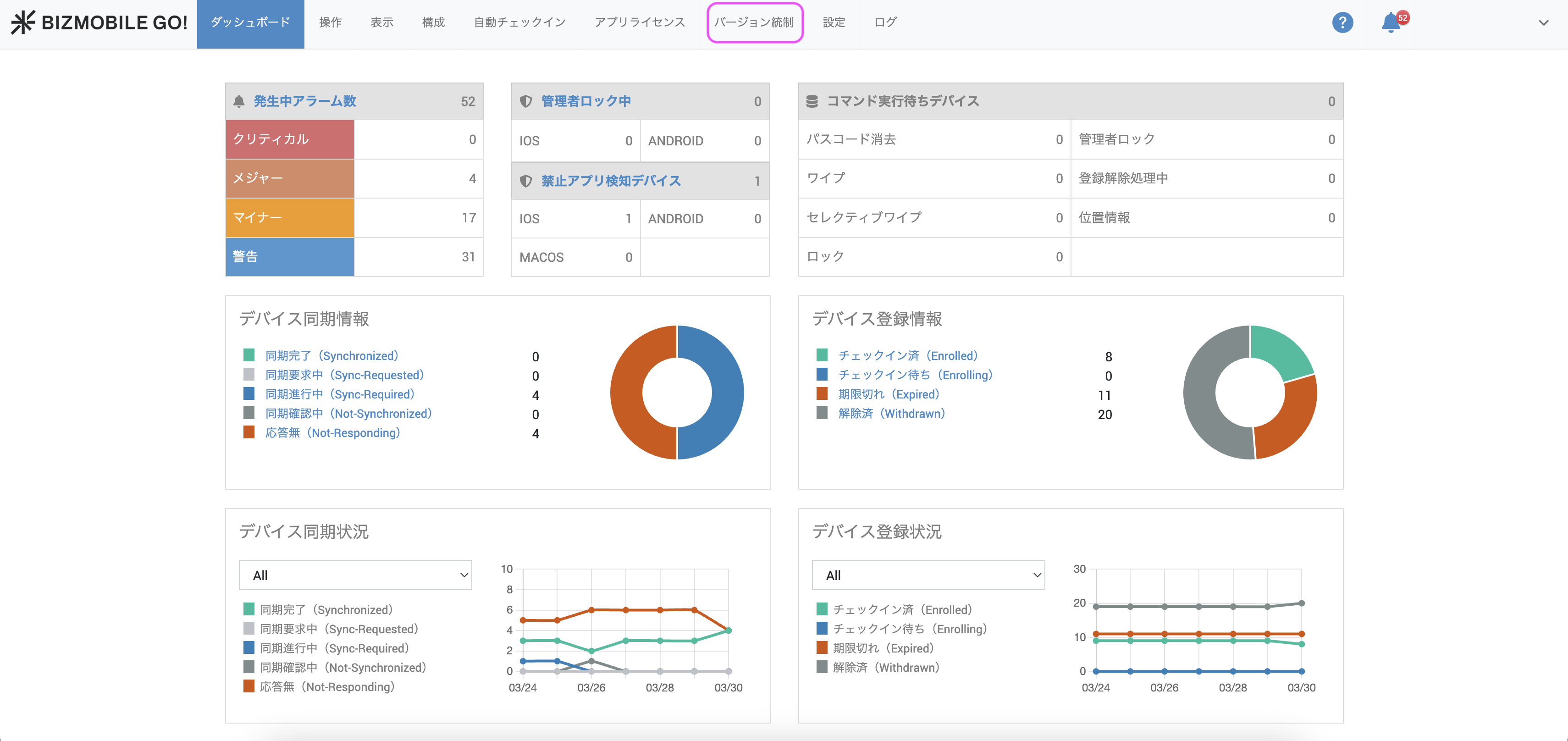 バージョン統制の対象とするデバイスとアプリを登録します。ここで登録したデバイス、アプリの情報がダッシュボードに表示されます。