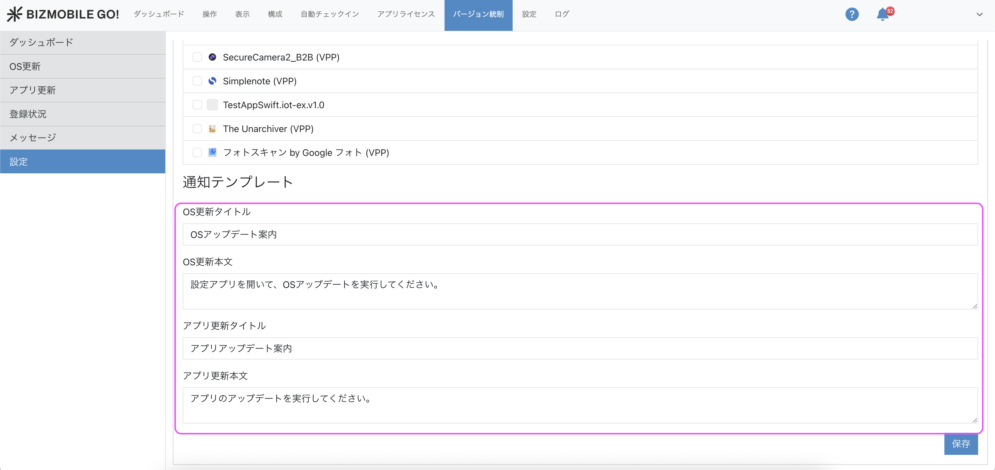 4. [通知テンプレート] を入力して、保存 ボタンをクリックして完了です