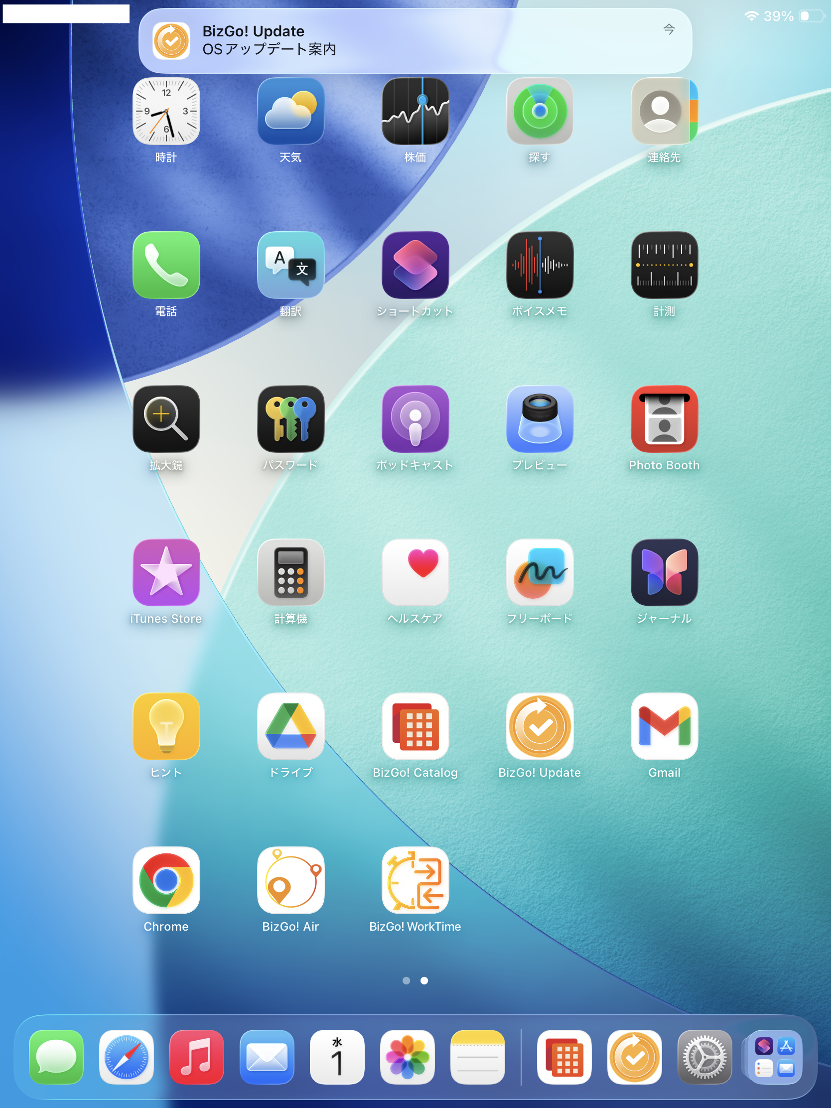 1. ホーム画面で「BizGo! Update」アプリを起動します