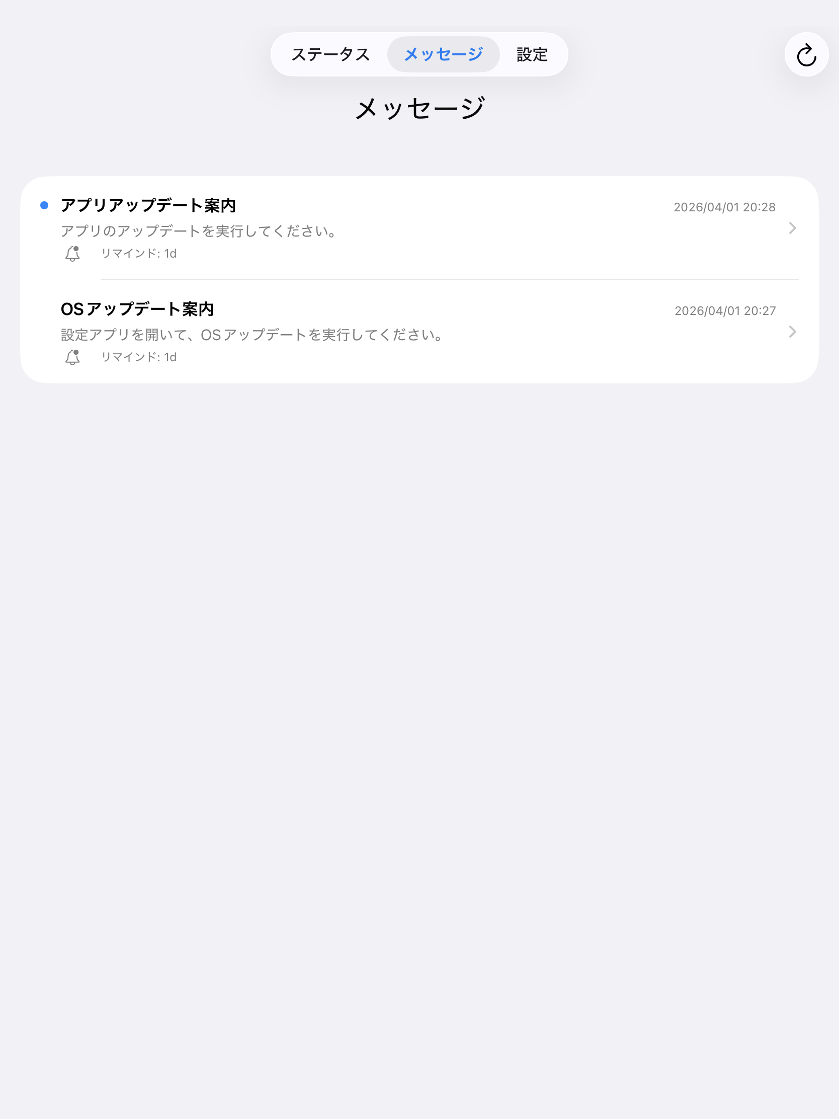 メッセージの確認とアップデート
