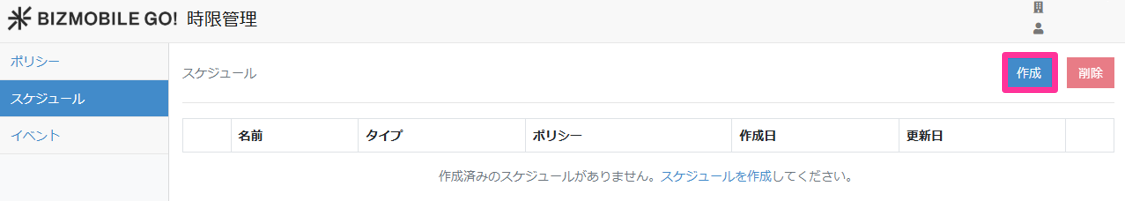 1. 【スケジュール】画面から、[作成]をクリックします。