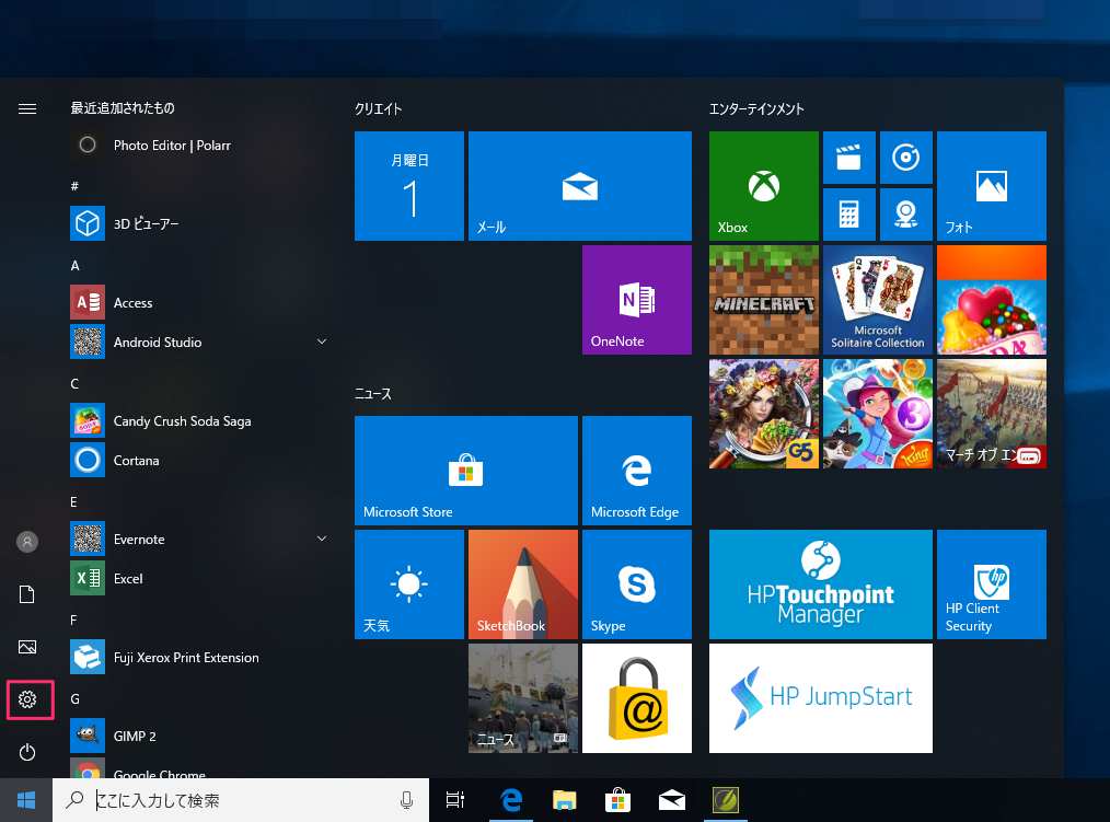 1. スタートボタンから[設定]をクリックします。