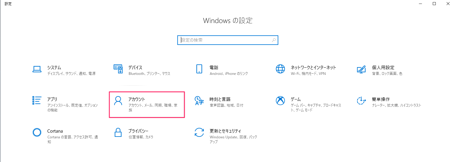 1. [アカウント]をクリックします。