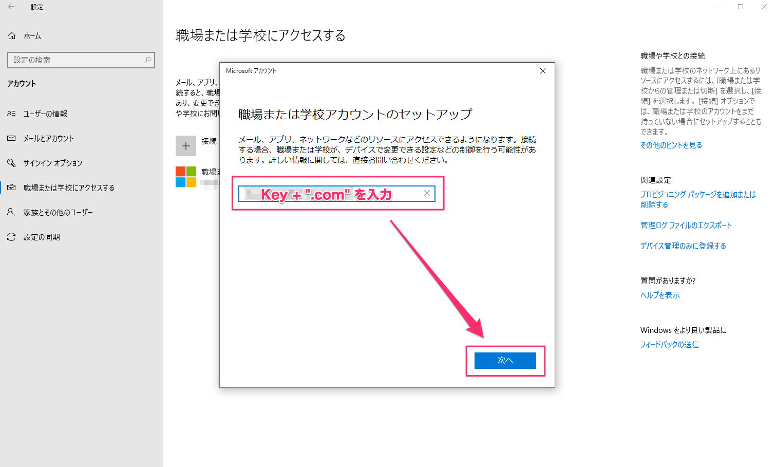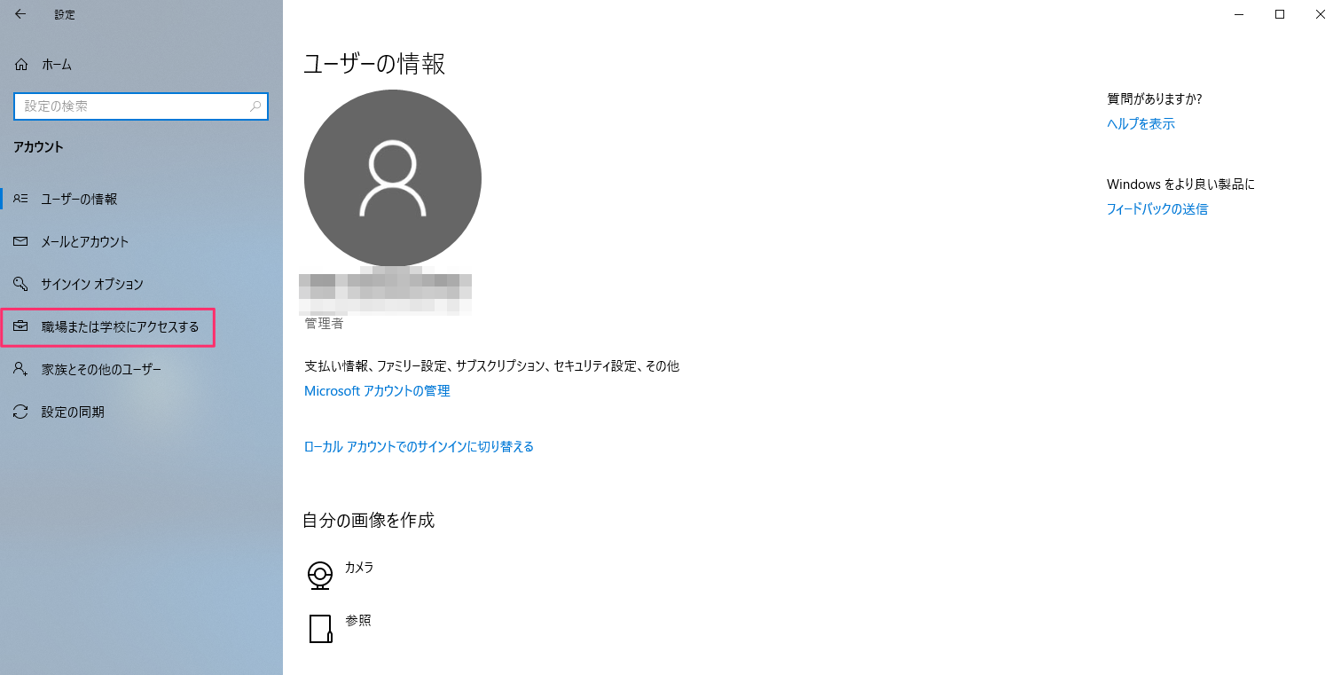 1. メニューから、[職場または学校にアクセスする]をクリックします。