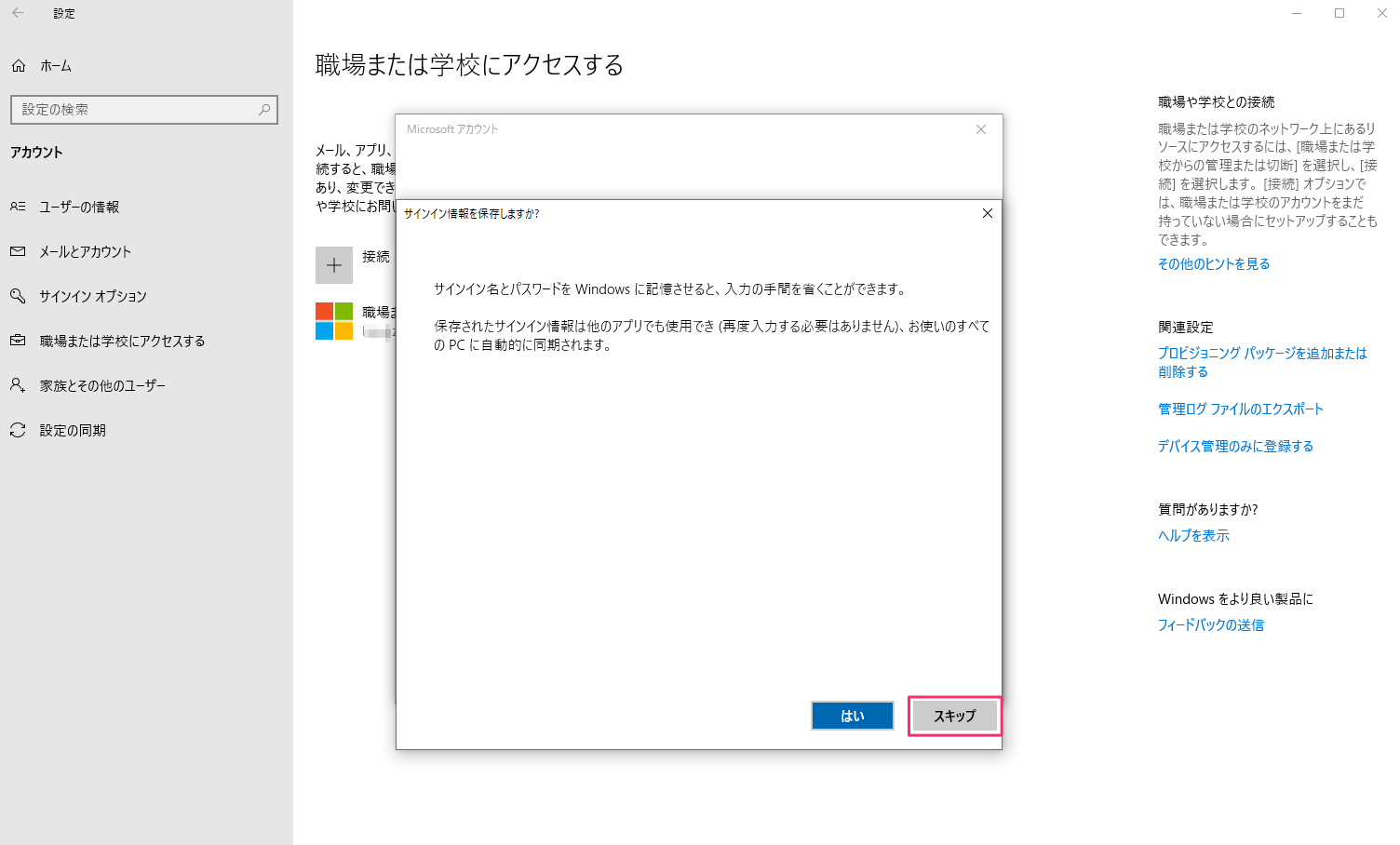 1. サインイン情報を保存しますか?が表示されますが、[スキップ]をクリックします。