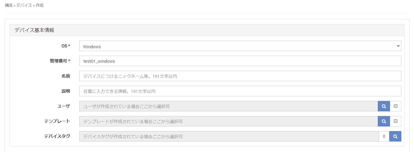 管理番号★デバイスを一意に識別する管理番号を入力します