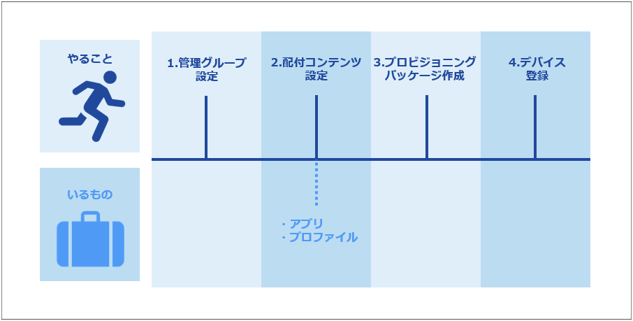 本ページでは、デバイス管理に共通する基本のステップと、共通プロビジョニングパッケージでの導入方法を順に説明しています。作業が必要となった部分のみ内容を確認することもできます。