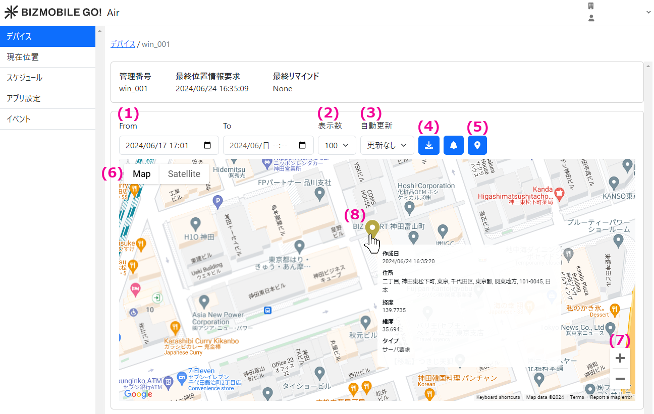 デバイス側での設定が完了すると、管理画面でデバイスの位置情報を確認できるようになります。