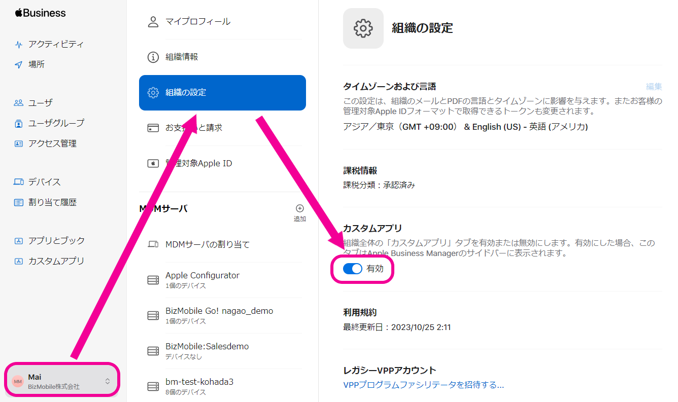 ※カスタムB2Bアプリの配付には、VPPの有効化作業を事前に実施いただく必要がございます。手順についてはこちらをご参照ください。