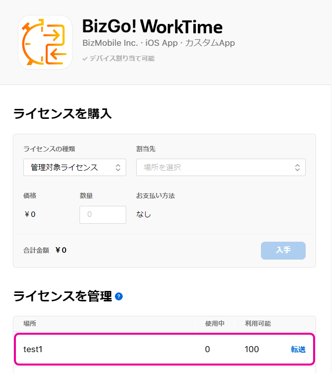 BizGo! WorkTimeアプリを配付する