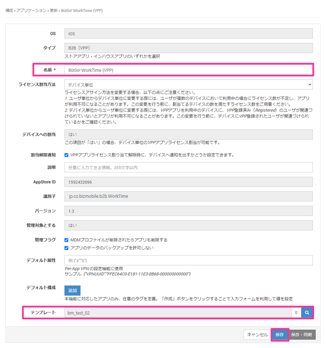 ワークタイムサービスのご利用にはBizGo! WorkTimeアプリをMDMから配付する必要があります。