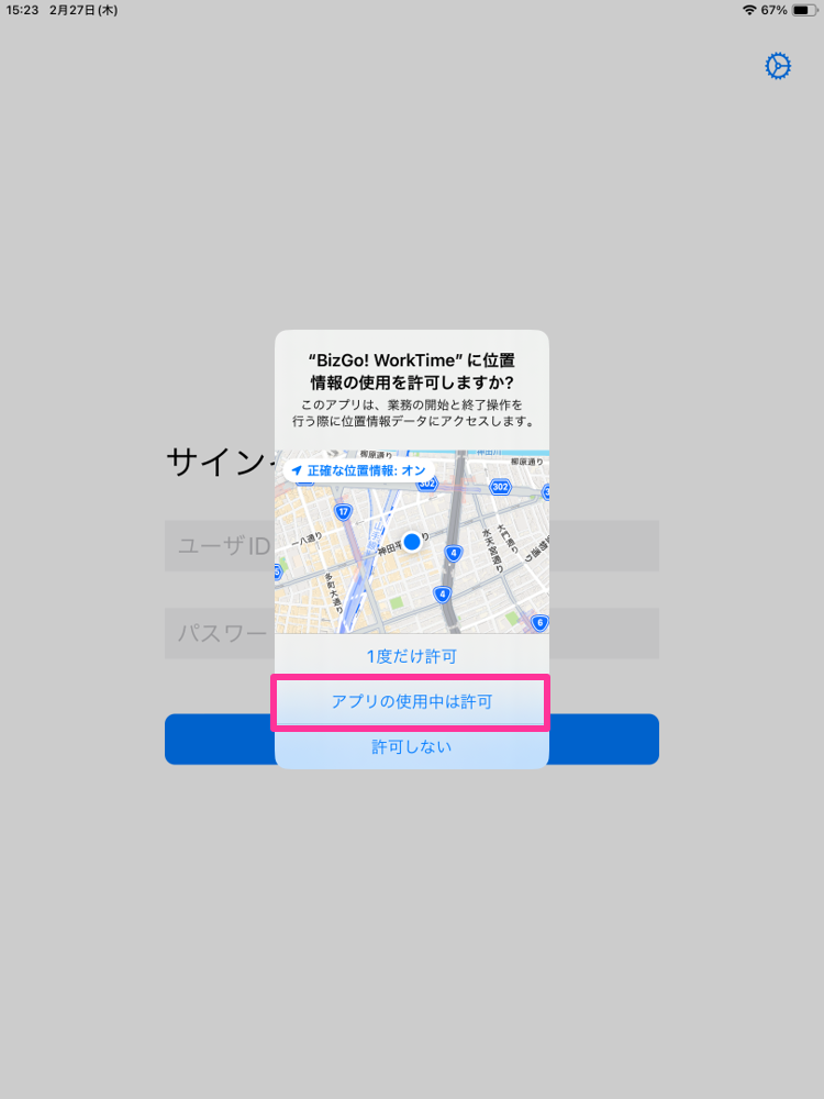 BizGo! WorkTimeアプリを起動し初期設定を行う