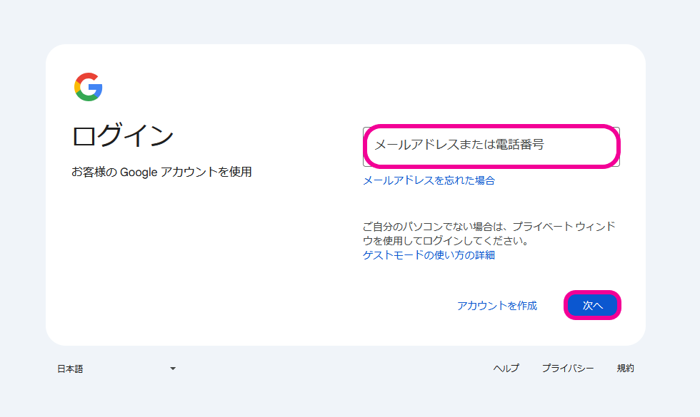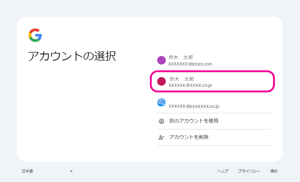 2.Googleのログイン画面から、ゼロタッチポータル用のアカウントを入力するか、またはアカウントを選択してログインします。