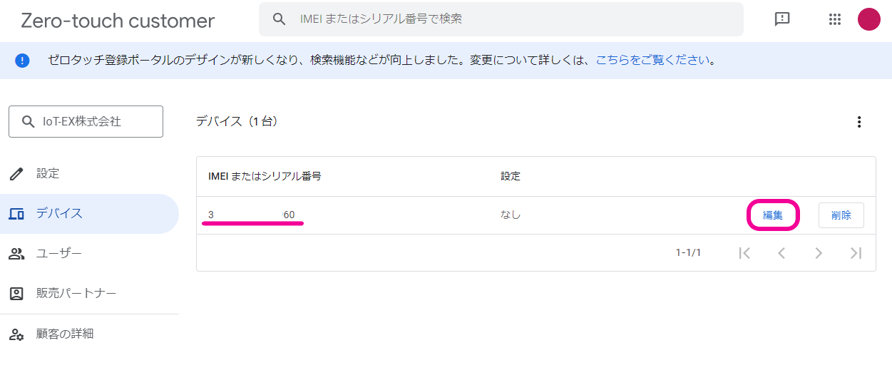 5.該当するデバイスの編集をクリックします。